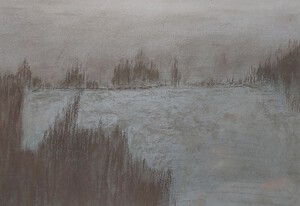 Houtskool, inkt, pastelkrijt en fineliner. 21 bij 37 cm