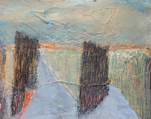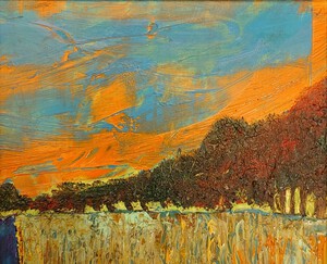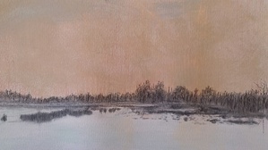 Olieverf op canvasboard in een degelijke oude lijst met buitenmaat 31 bij 37 en binnenmaat 21 bij 27